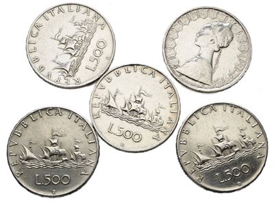 REPUBBLICA ITALIANA, Lotto DI N. 5 Monete Da 500 Lire "Caravelle" In Argento