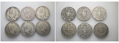 REGNO D'ITALIA. Vittorio Emanuele II (1861-1878). Lotto DI 6 Monete Da 5 Lire 1874-1875. Conserva...