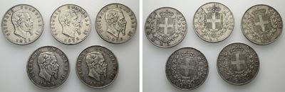 REGNO D'ITALIA. Vittorio Emanuele II (1861-1878). Lotto DI 5 Monete Da 5 Lire 1870-1875-1876. Con...