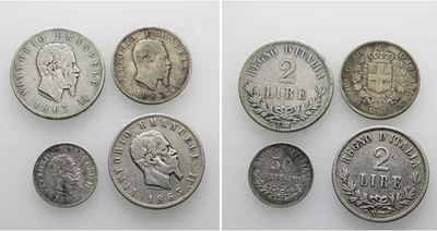 REGNO D'ITALIA. Vittorio Emanuele II (1861-1878). Lotto DI 4 Monete Da 2 Lire, 1 Lira E 50 Centes...