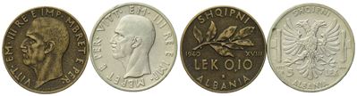 ALBANIA ITALIANA. Vittorio Emanuele III (1939-1943). Lotto Da 2 Monete Da 5 Lek In Argento E 0,10...