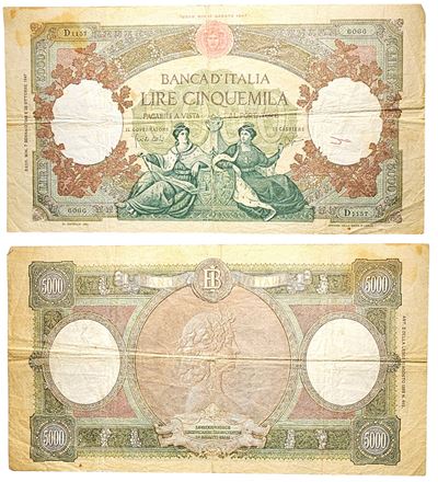 REPUBBLICA ITALIANA. 5000 Lire 1968 "Colombo - I Tipo".