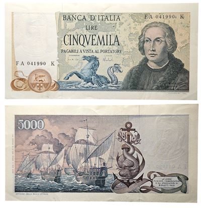REPUBBLICA ITALIANA. 5000 Lire 1970 "Colombo - I Tipo".