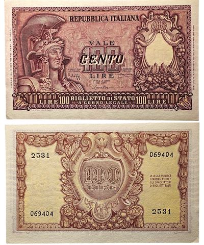 REPUBBLICA ITALIANA. 100 Lire "Minerva" 1951.