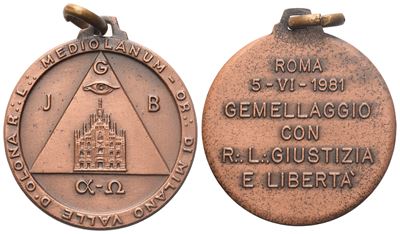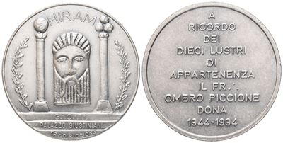 Medaglia "HIRAM" G. O. I. Palazzo Giustiniani, A Ricordo Dei Dieci Lustri DI Appartenenza Il Fr. ...