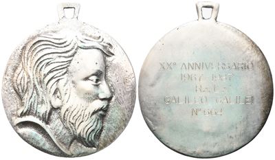 Medaglia XX° Anniversario 1967 - 1987 R. L. "Galileo Galilei" N° 664, 1987, AG (50 MM)