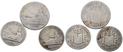 SPAGNA. Governo Provvisorio (1868-1871). Lotto DI 3 Monete. 2 Pesetas 1869; 1 Peseta 1869, 1870. ...