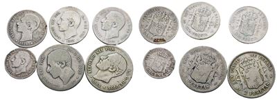 SPAGNA. Alfonso XII (1874-1885). Lotto DI 6 Monete. 2 Pesetas 1882, 1883; 1 Peseta 1876, 1883, 18...