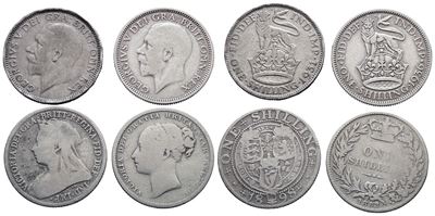 INGHILTERRA. Lotto DI 4 Monete. 1 Shilling 1883, 1898, 1931, 1936. Conservazioni Varie. Ag