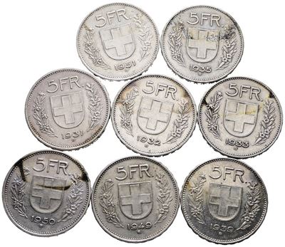SVIZZERA. Lotto DI 8 Monete Da 5 Franchi 1931, 1932, 1933, 1935, 1939, 1949, 1950, 1951. Conserva...
