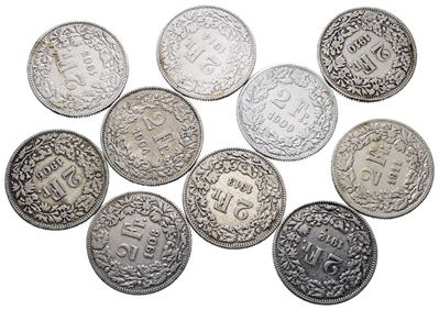 SVIZZERA. Lotto DI 10 Monete Da 2 Franchi 1904, 1905, 1906, 1908, 1909, 1910, 1911, 1912, 1913, 1...
