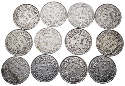 SVIZZERA. Lotto DI 12 Monete Da 2 Franchi 1911, 1916, 1920, 1921, 1922, 1926, 1928, 1931, 1936, 1...