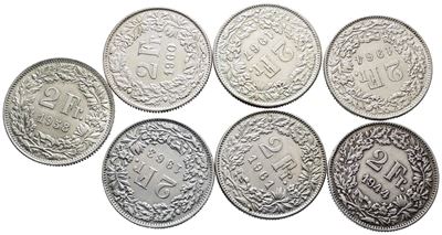 SVIZZERA. Lotto DI 7 Monete Da 2 Franchi 1944, 1958, 1960, 1961, 1963, 1964, 1967. Conservazioni ...