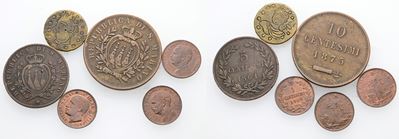 REGNO D'ITALIA - SAN MARINO. Lotto Composto Da 1, 2, 5, 10 Centesimi Ed Un Tondello Inciso Con Fi...
