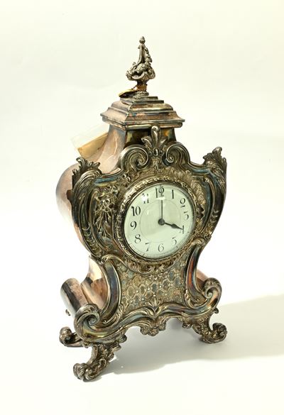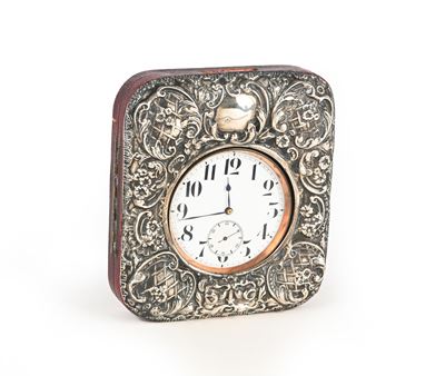 Orologio da tavolo d'epoca Art Nouveau con cassa in argento Sterling con punzoni Londra 1900. Mec...