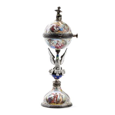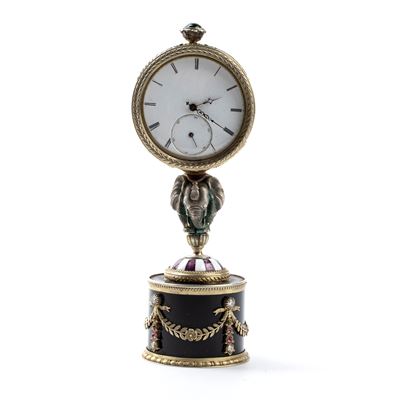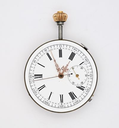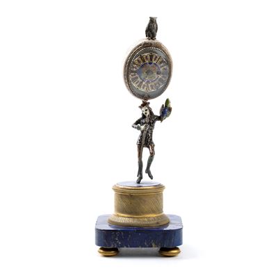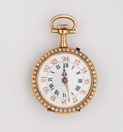 Orologio da tasca monachina a carica remontoir con cassa francese in oro 18 kt con smalti raffigu...