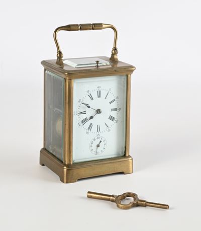 Orologio da tavolo Art Déco con ripetizione a minuti in argento e smalti