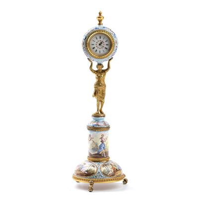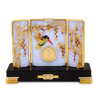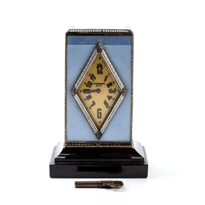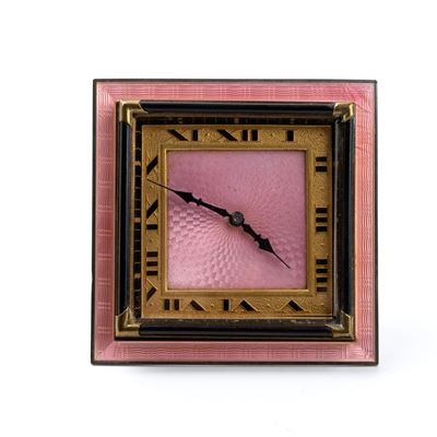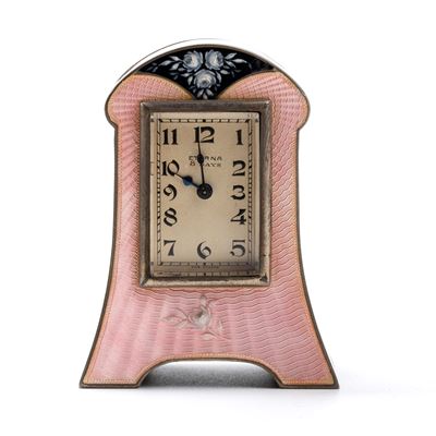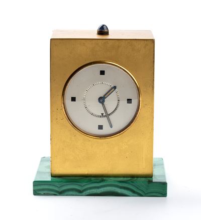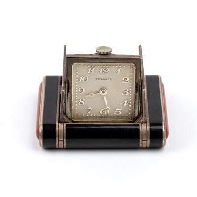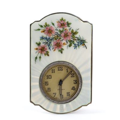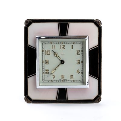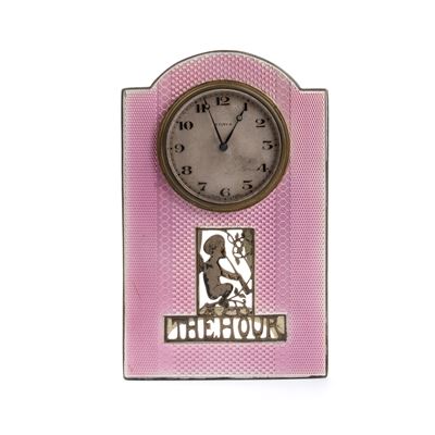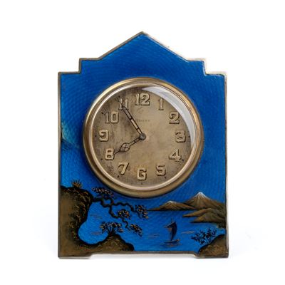Orologio da tavolo Art Déco in argento dorato e smalti