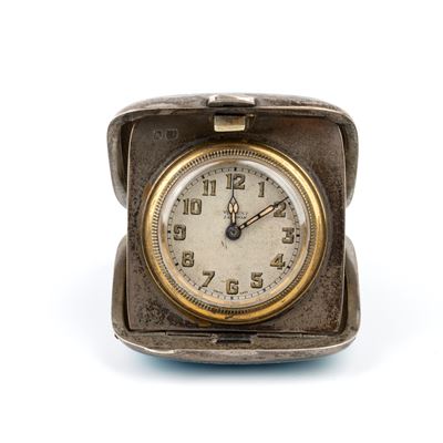 Porta orologio in legno rivestito in velluto e lamina d'argento sterling Londra 1905 con all'inte...