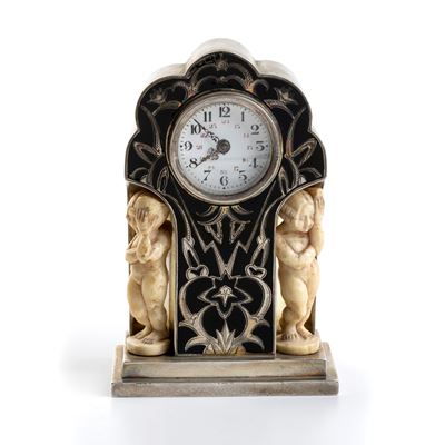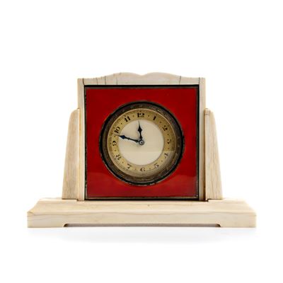 Kienzle (?): Orologio da tavolo Art Déco in avorio e smalti