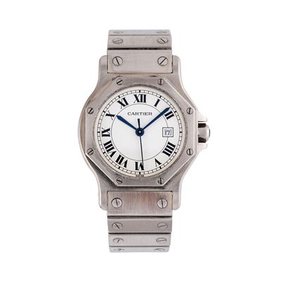 CARTIER - SANTOS OCTAGONOROLOGIO IN ACCIAIO A CARICA AUTOMATICA CON QUADRANTE BIANCO E DATARIO AD...