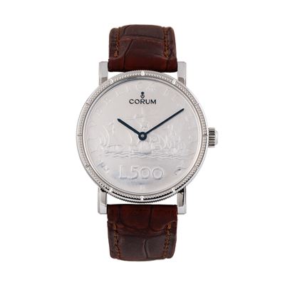 CORUM - 500 LIREOROLOGIO SOLO TEMPO A CARICA AUTOMATICA IN ACCIAIO CON MONETA 500 LIRE IN ARGENTO