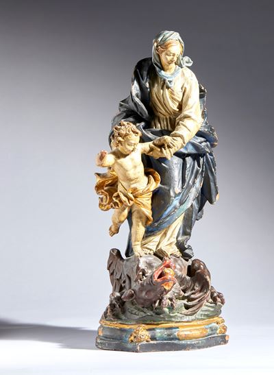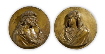 Coppia di altorilievi raffiguranti Gesù e la Vergine